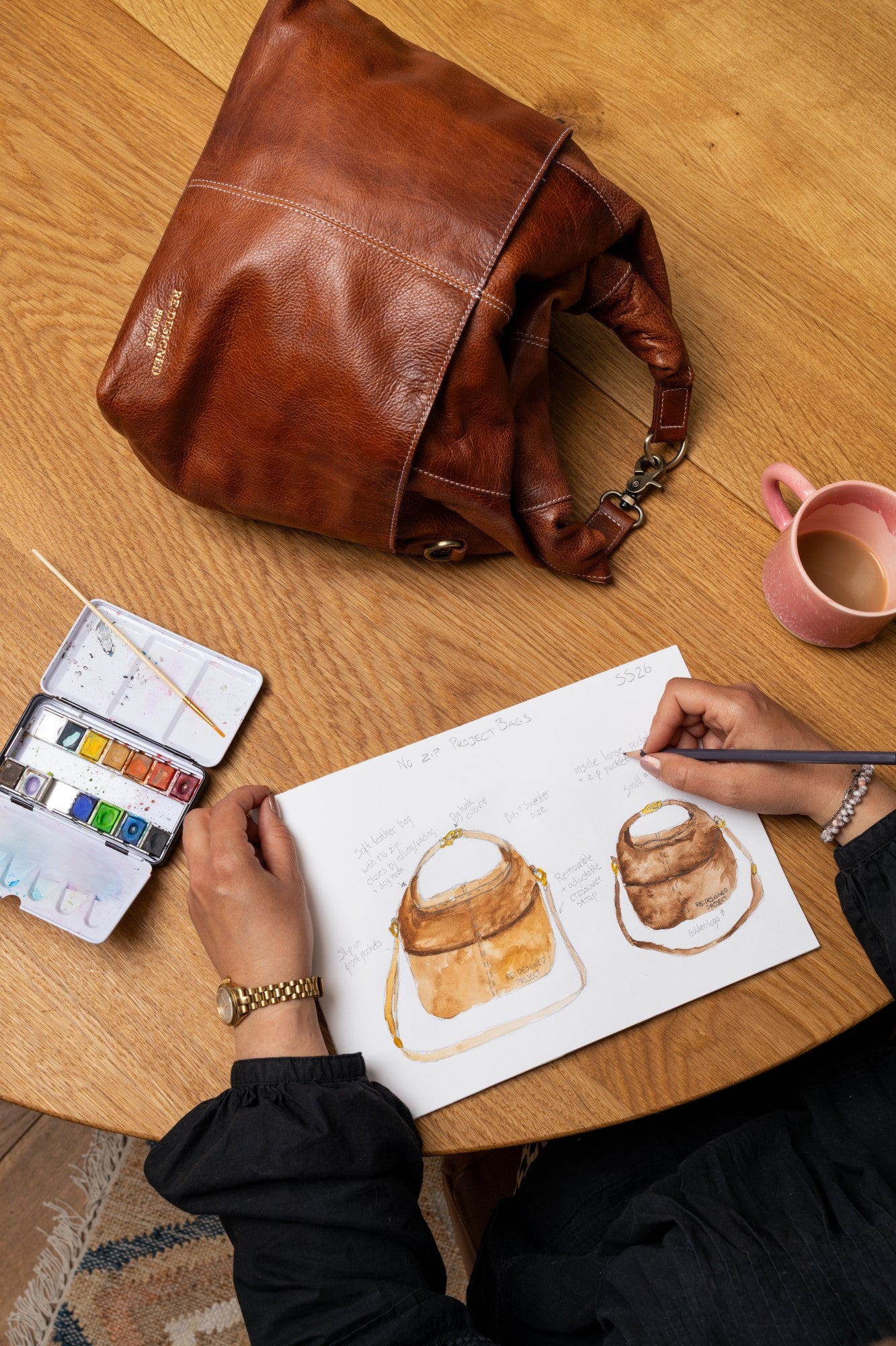 Project 100 er fremstillet i vores Urban-kvalitet, som er naturligt indfarvet læder. Inden overfladen færdigbehandles, behandles læderet med farve for at bevare det oprindelige mønster i det rå læder. Kvaliteten kendetegnes ved sit naturlige og bløde look og feel, hvilket gør hver taske unik med sine egne karakteristika. Efter indfarvning påføres overfladen manuelt et let lag voks.